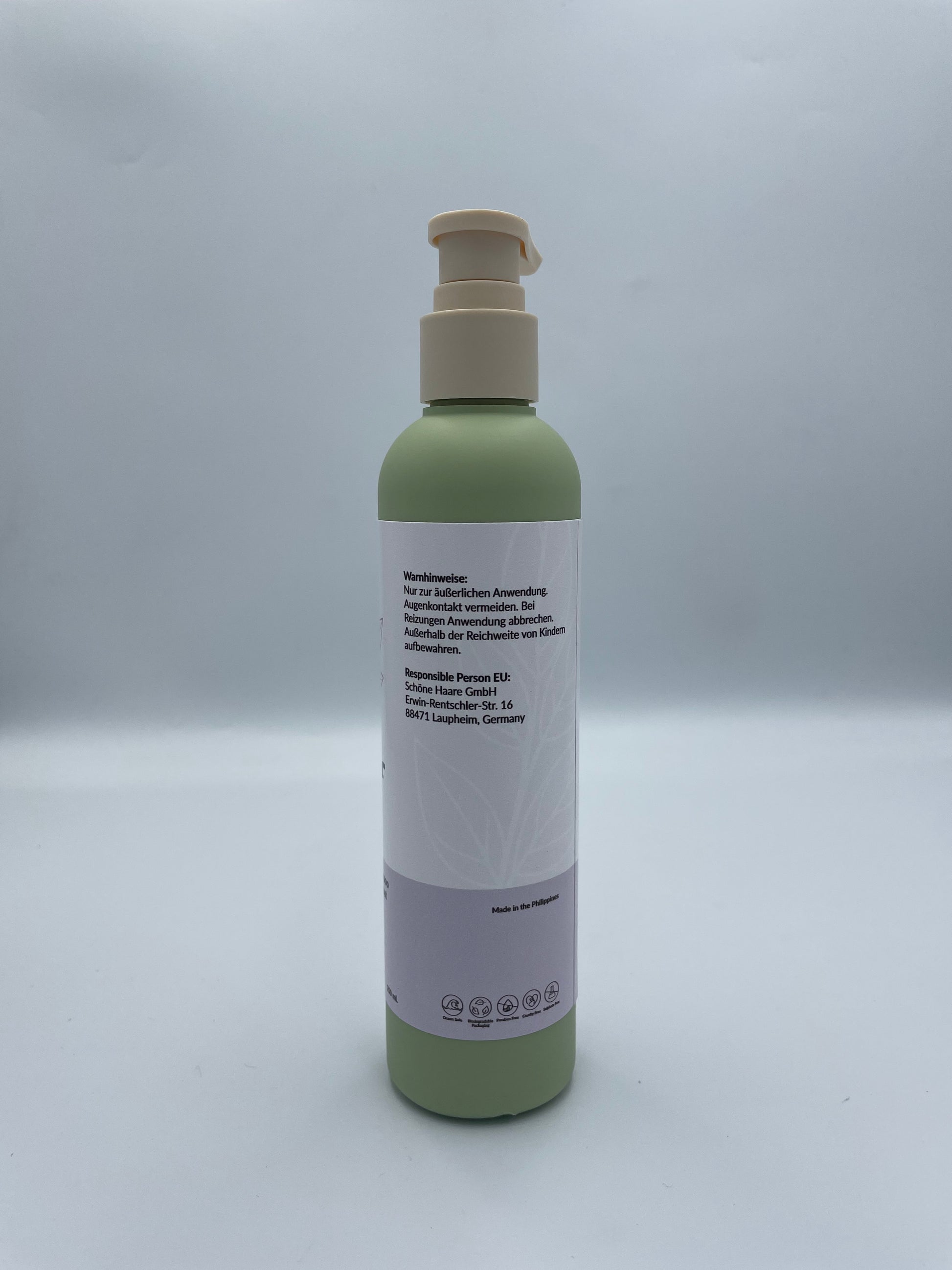 Auf die nasse Kopfhaut auftragen, sanft einmassieren und ausspülen. Vorgang wiederholen. Täglich anwendbar.